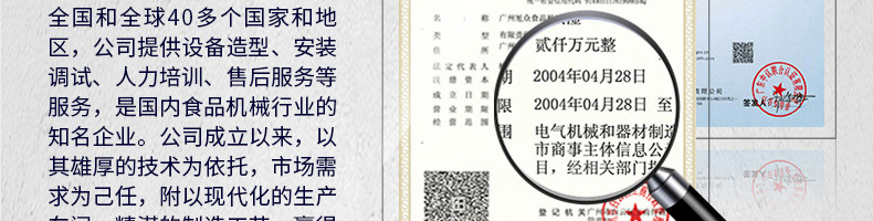 廣州旭眾食品機械有限公司是一家集科研開發(fā),生產(chǎn)設(shè)計,營銷服務(wù)為一體的現(xiàn)代化生產(chǎn)企業(yè)?,F(xiàn)代化生產(chǎn)車間,精湛制造技術(shù),所產(chǎn)機械歷經(jīng)市場重重考驗,不斷贏得海內(nèi)外客戶的贊譽。