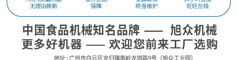 廣州旭眾食品機械有限公司是一家集科研開發(fā),生產(chǎn)設(shè)計,營銷服務(wù)為一體的現(xiàn)代化生產(chǎn)企業(yè)?,F(xiàn)代化生產(chǎn)車間,精湛制造技術(shù),所產(chǎn)機械歷經(jīng)市場重重考驗,不斷贏得海內(nèi)外客戶的贊譽。