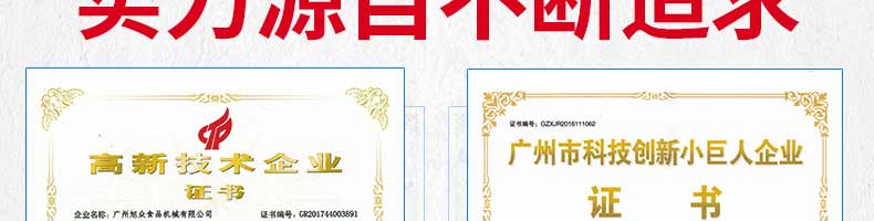 廣州旭眾食品機(jī)械有限公司是一家集科研開發(fā),生產(chǎn)設(shè)計(jì),營銷服務(wù)為一體的現(xiàn)代化生產(chǎn)企業(yè)?,F(xiàn)代化生產(chǎn)車間,精湛制造技術(shù),所產(chǎn)機(jī)械歷經(jīng)市場(chǎng)重重考驗(yàn),不斷贏得海內(nèi)外客戶的贊譽(yù)。