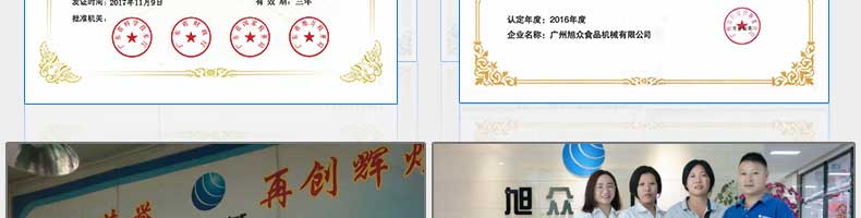 廣州旭眾食品機(jī)械有限公司是一家集科研開(kāi)發(fā),生產(chǎn)設(shè)計(jì),營(yíng)銷(xiāo)服務(wù)為一體的現(xiàn)代化生產(chǎn)企業(yè)?,F(xiàn)代化生產(chǎn)車(chē)間,精湛制造技術(shù),所產(chǎn)機(jī)械歷經(jīng)市場(chǎng)重重考驗(yàn),不斷贏得海內(nèi)外客戶(hù)的贊譽(yù)。