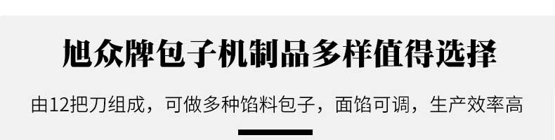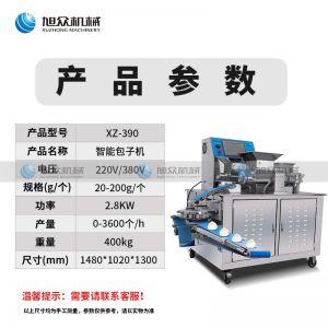 XZ-390智能包子機,全自動包子,一鍵聯(lián)動調(diào)節(jié)智能記憶系統(tǒng)。由12把刀組成,可做多種餡料包子,面餡可調(diào),生產(chǎn)效率高。自帶水冷系統(tǒng),冷卻效果明顯,方便客戶大批量制作產(chǎn)品。