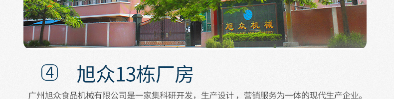 廣州旭眾食品機(jī)械有限公司是一家集科研開發(fā),生產(chǎn)設(shè)計(jì),營(yíng)銷服務(wù)為一體的現(xiàn)代化生產(chǎn)企業(yè)。現(xiàn)代化生產(chǎn)車間,精湛制造技術(shù),所產(chǎn)機(jī)械歷經(jīng)市場(chǎng)重重考驗(yàn),不斷贏得海內(nèi)外客戶的贊譽(yù)。
