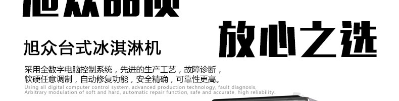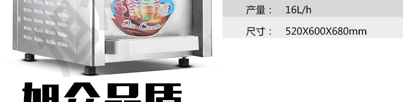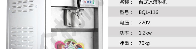 BQL-116臺(tái)式冰淇淋機(jī),●選用國(guó)際名牌成熟制冷配套件和高效壓縮機(jī),融合旭眾精湛工藝輔以嚴(yán)格的質(zhì)量控制流程,使產(chǎn)品整體性能及品質(zhì)得以全面提升?!癫捎萌珨?shù)字電腦控制系統(tǒng),選用名牌優(yōu)質(zhì)電器元件,先進(jìn)的生產(chǎn)工藝,故障診斷,軟硬任意調(diào)制,自動(dòng)修復(fù)功能,安全精確,可靠性更高?!駥I(yè)成熟制冷系統(tǒng)設(shè)計(jì),選用世界名牌大功率專用壓縮機(jī),大大縮短冰淇淋成型時(shí)間,相同時(shí)間內(nèi)冰淇淋產(chǎn)量大幅度增加,使您生意火爆時(shí)依然得心應(yīng)手,為您創(chuàng)造財(cái)富。●安全平穩(wěn)的機(jī)械攪拌系統(tǒng),噪音更低、振動(dòng)更小,使整機(jī)運(yùn)行性能達(dá)到國(guó)際先進(jìn)水平?!翊_保進(jìn)料溫度在0°C~35°C;環(huán)境溫度5°C~40°C勻可正常使用。