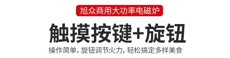 臺(tái)式平爐旋鈕XZ-DSK2X1,商用智能電磁爐3500W大火力、節(jié)能省電、聚能加熱。您需要一臺(tái)經(jīng)久耐用的好電磁爐不銹鋼材質(zhì)加厚不銹鋼架構(gòu),穩(wěn)定耐用,不易生銹,耐腐蝕,易清潔,干凈省事。