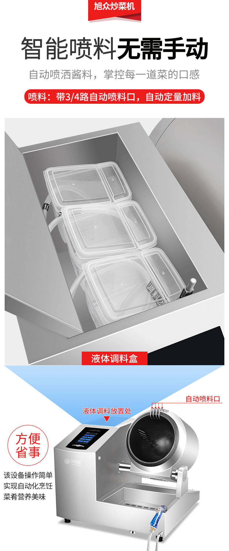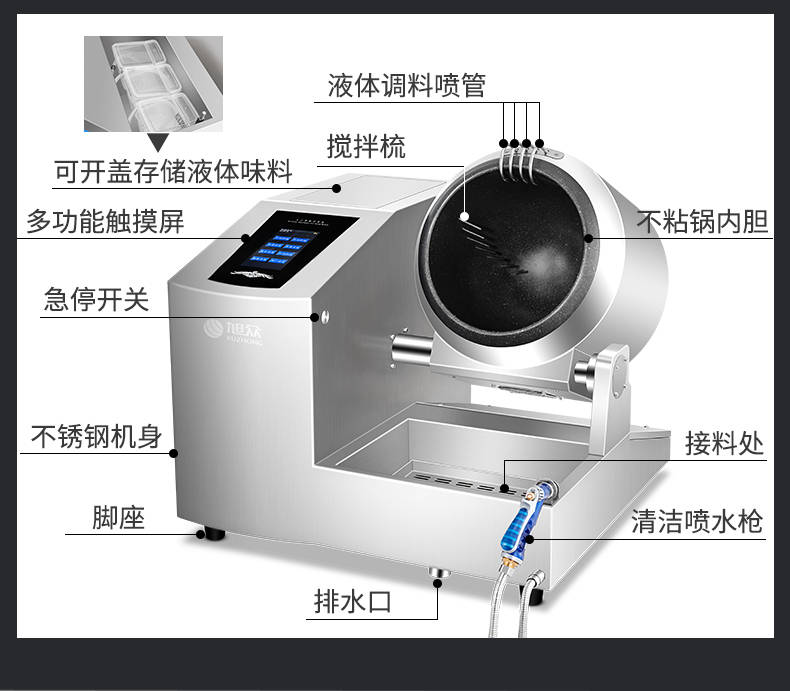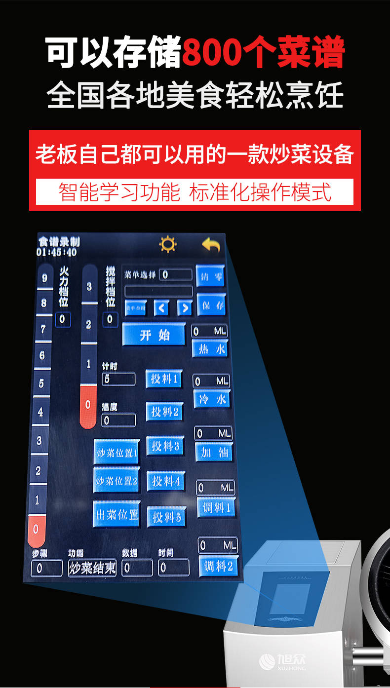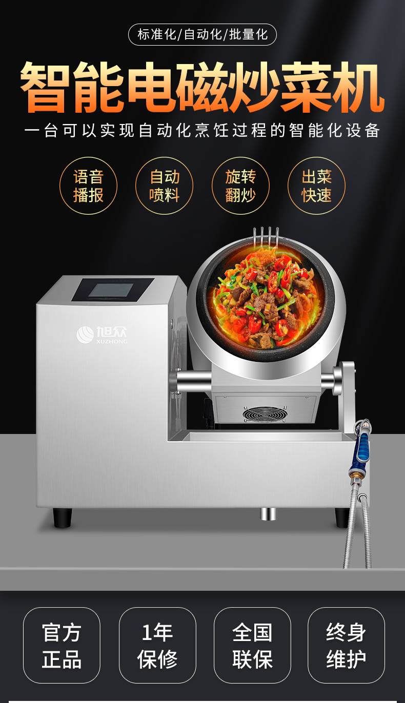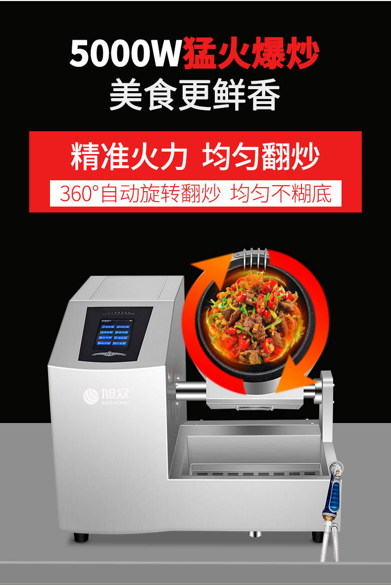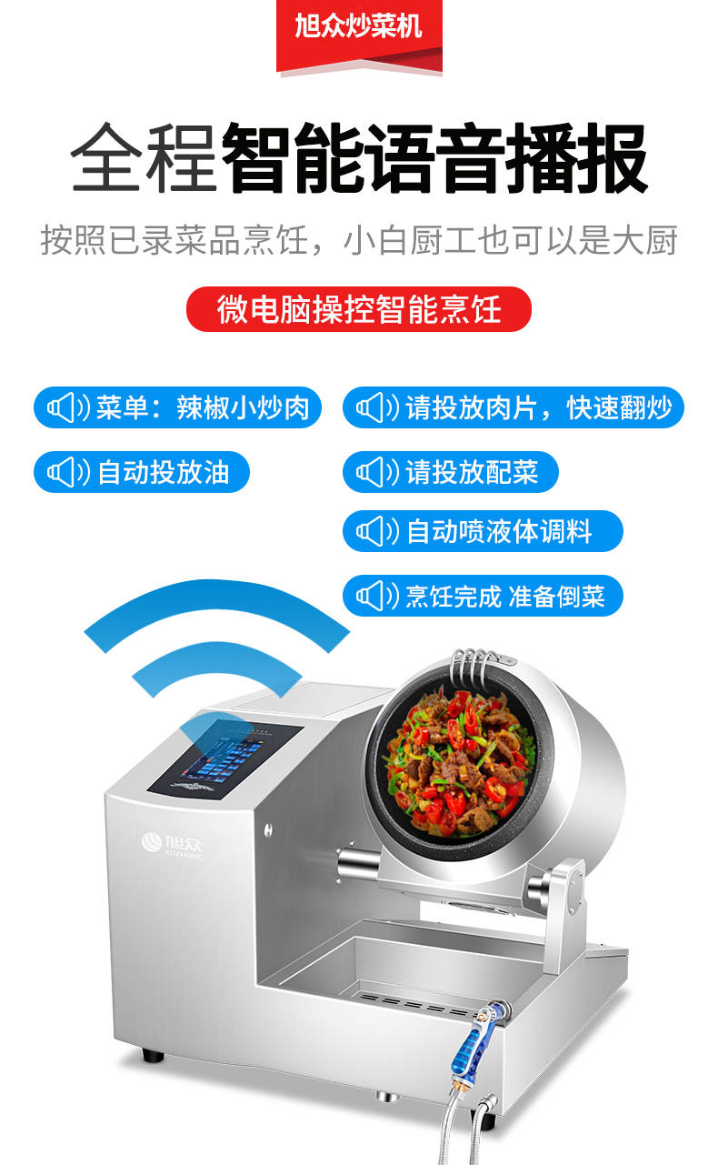 XZ-30TCP臺式300智能電磁炒菜機(jī)(觸屏+噴料),可以實現(xiàn)自動化烹飪過程的智能化設(shè)備,語音播報、自動噴料、旋轉(zhuǎn)翻炒、快速出菜。實現(xiàn)自動化烹飪,新一代微電腦操控智能烹飪設(shè)備、顛覆傳統(tǒng)炒菜模式。5000W猛火爆炒美食更鮮香