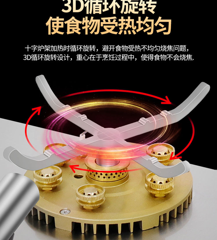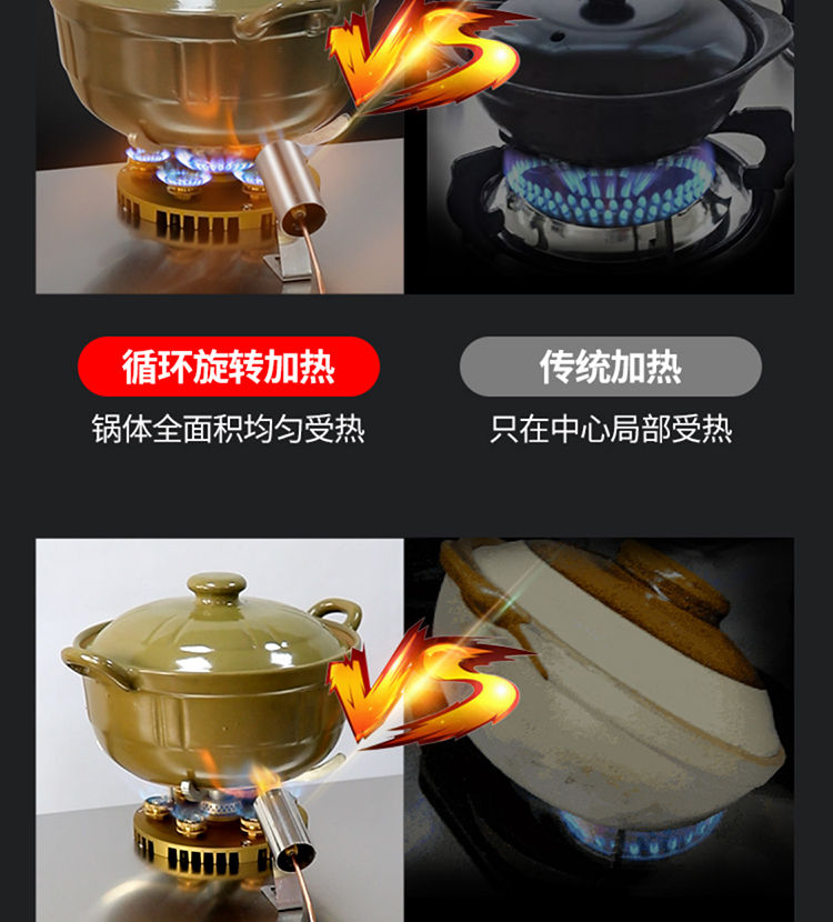 智能煲仔-爐商用四頭六眼旋轉(zhuǎn)韓式猛火灶-砂鍋灶燃?xì)庠睿?/p>