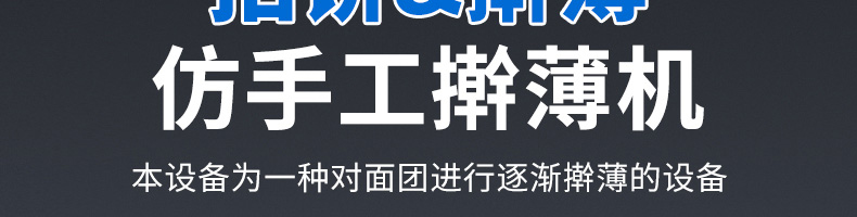 XZ-150型搟薄機(jī),為一種對面團(tuán)可進(jìn)行氣動拍餅或仿手工搟薄的設(shè)備,可根據(jù)用戶需要對面團(tuán)的直徑、厚度進(jìn)行調(diào)整并將面團(tuán)按照設(shè)定的規(guī)格進(jìn)行搓圓摔搟薄。