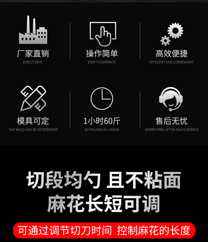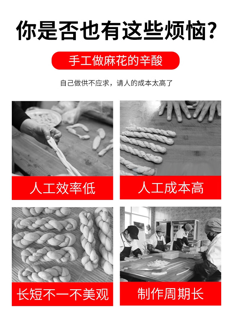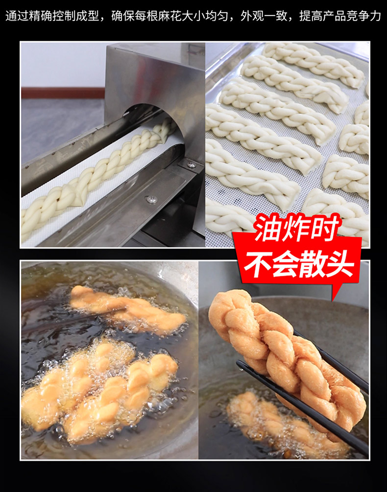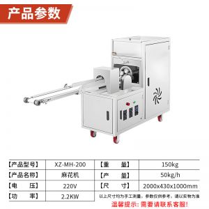 XZ-MH-200麻花機(jī),技術(shù)支持、贈(zèng)送配方、支持定制,1小時(shí)加工60斤麻花。切段均勺、且不粘面,麻花長(zhǎng)短可調(diào)??赏ㄟ^(guò)調(diào)節(jié)切刀時(shí)間、控制麻花的長(zhǎng)度。通過(guò)精確控制成型,確保每根麻花大小均勻,外觀一致,提高產(chǎn)品競(jìng)爭(zhēng)力。
