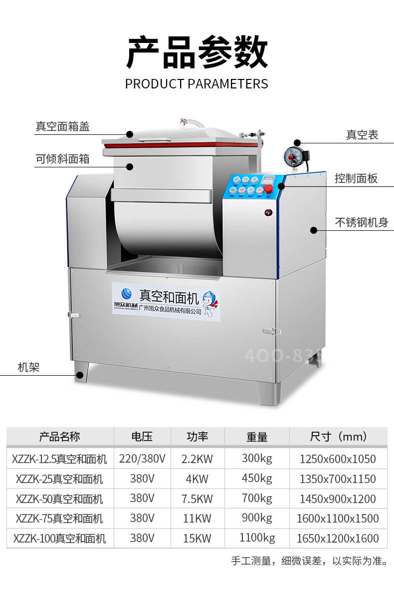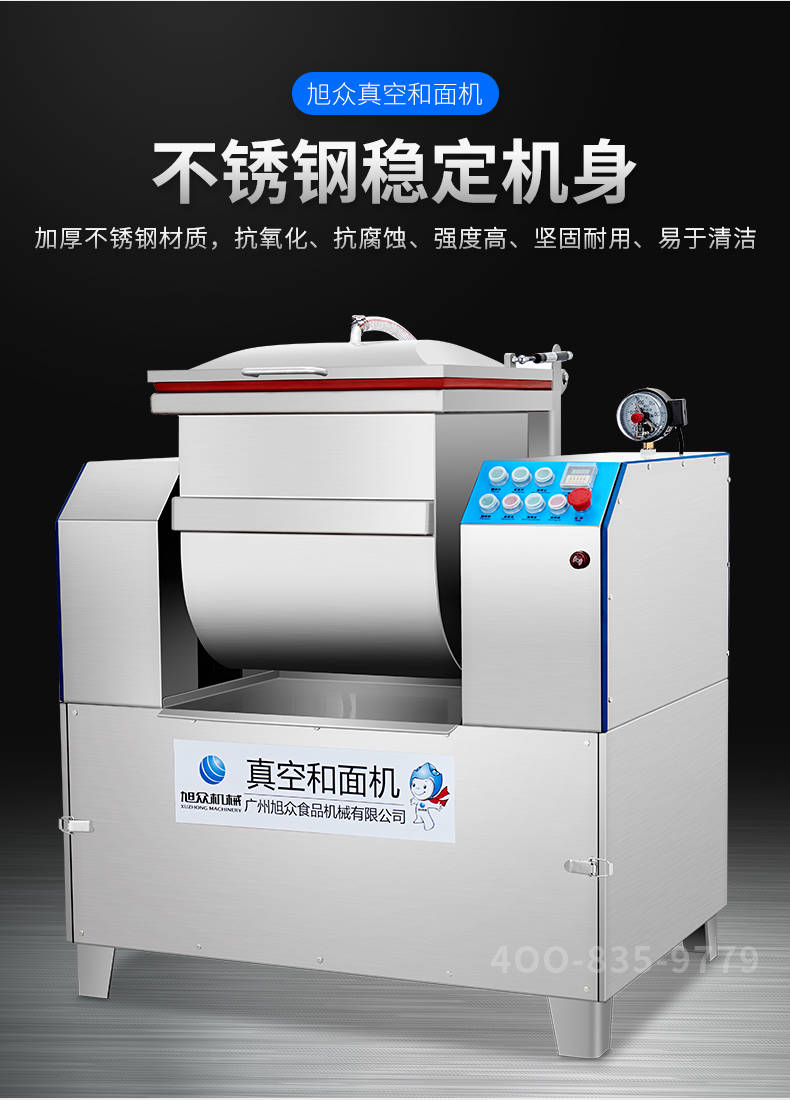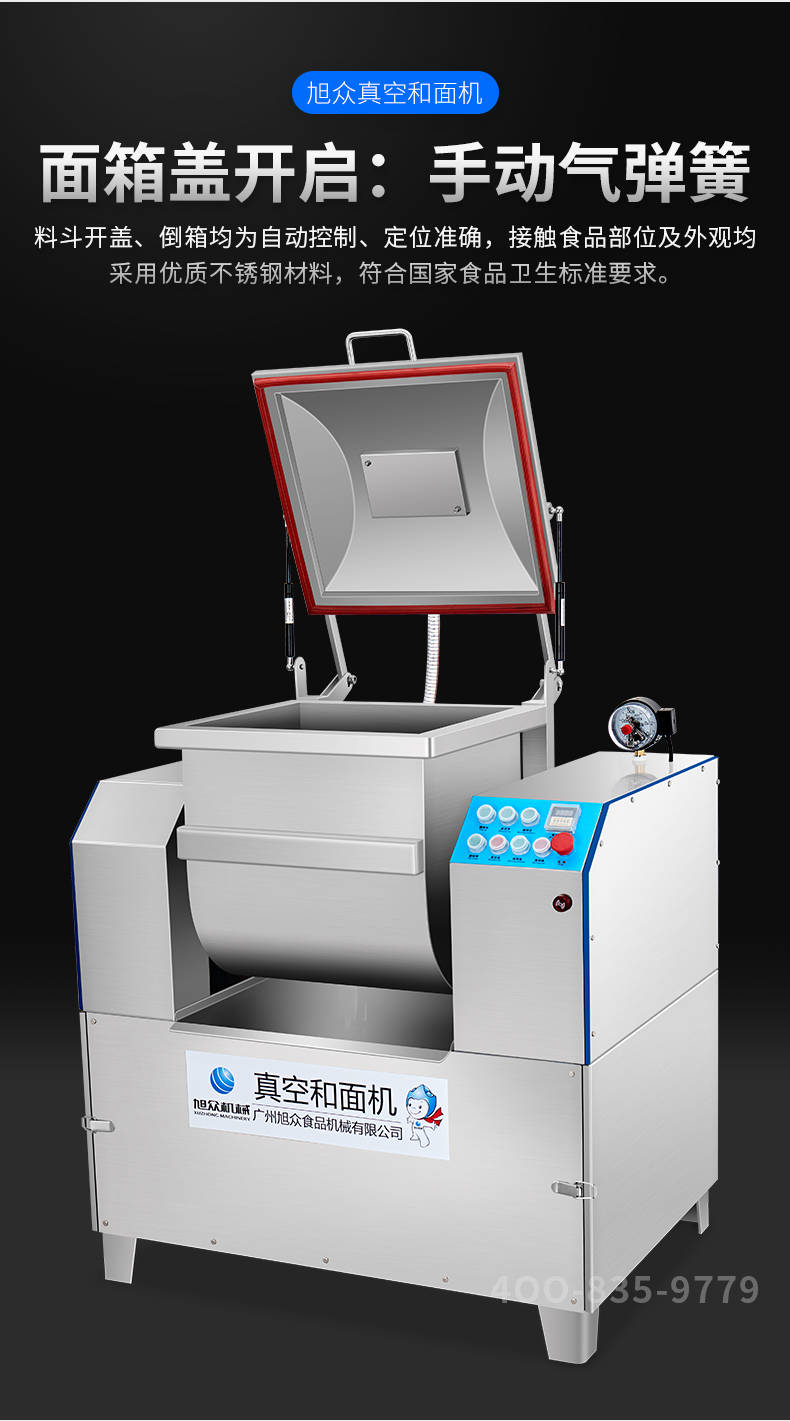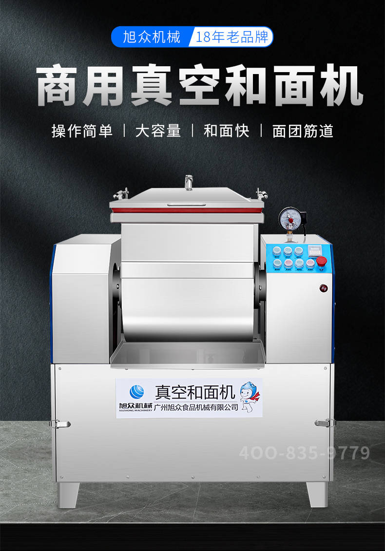 XZZK-25真空和面機(jī),商用真空和面機(jī),操作簡單、大容量、和面快、面團(tuán)筋道。在真空狀態(tài)下模擬手工和面的原理,和面過程在真空負(fù)壓下拌和,使面粉中的蛋白質(zhì)在短時(shí)間內(nèi)、充分的吸收水分,使面筋網(wǎng)絡(luò)快速形成。