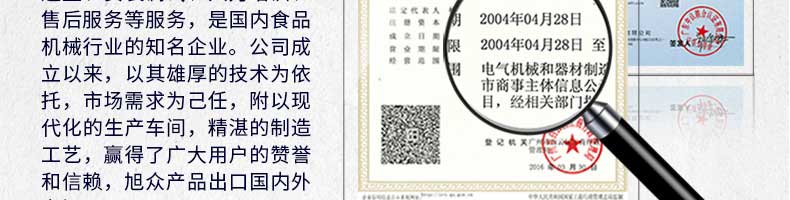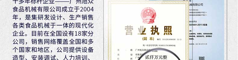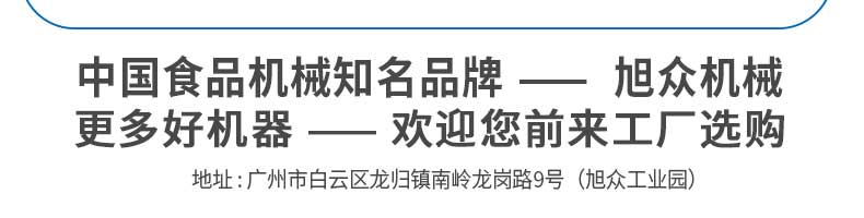 廣州旭眾食品機(jī)械有限公司是一家集科研開發(fā),生產(chǎn)設(shè)計(jì),營(yíng)銷服務(wù)為一體的現(xiàn)代化生產(chǎn)企業(yè)。現(xiàn)代化生產(chǎn)車間,精湛制造技術(shù),所產(chǎn)機(jī)械歷經(jīng)市場(chǎng)重重考驗(yàn),不斷贏得海內(nèi)外客戶的贊譽(yù)。
