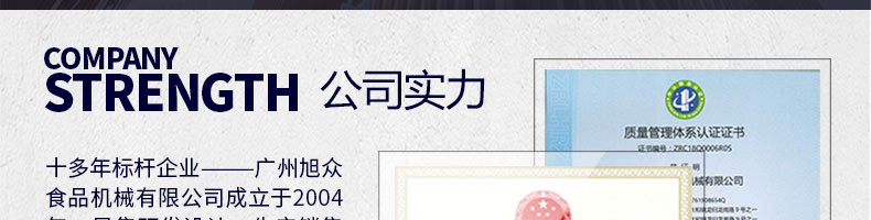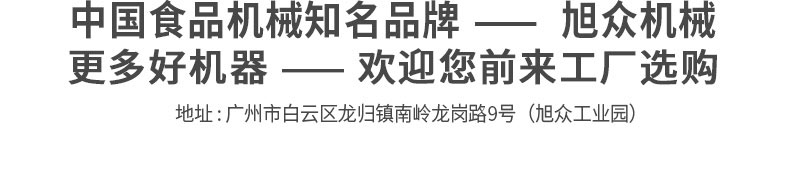 廣州旭眾食品機(jī)械有限公司是一家集科研開發(fā),生產(chǎn)設(shè)計(jì),營銷服務(wù)為一體的現(xiàn)代化生產(chǎn)企業(yè)?,F(xiàn)代化生產(chǎn)車間,精湛制造技術(shù),所產(chǎn)機(jī)械歷經(jīng)市場(chǎng)重重考驗(yàn),不斷贏得海內(nèi)外客戶的贊譽(yù)。