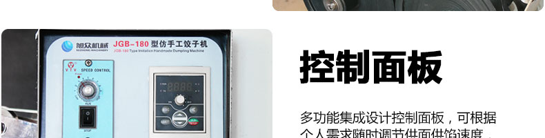 JGB-180餃子機(jī),先進(jìn)的自動(dòng)餃子生產(chǎn)設(shè)備,包括主動(dòng)壓皮部分、自動(dòng)供餡部分、自動(dòng)包合部分、自動(dòng)成品輸送部分,并且只要更換模具,就可制鍋貼等食品。適合食品速凍廠(chǎng)、飯店、廠(chǎng)礦學(xué)校食堂等制作包餡面制品單位使用。