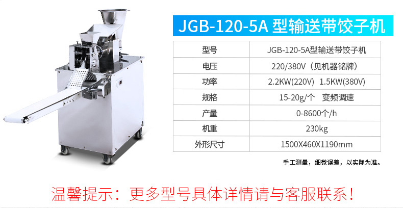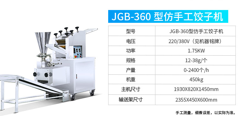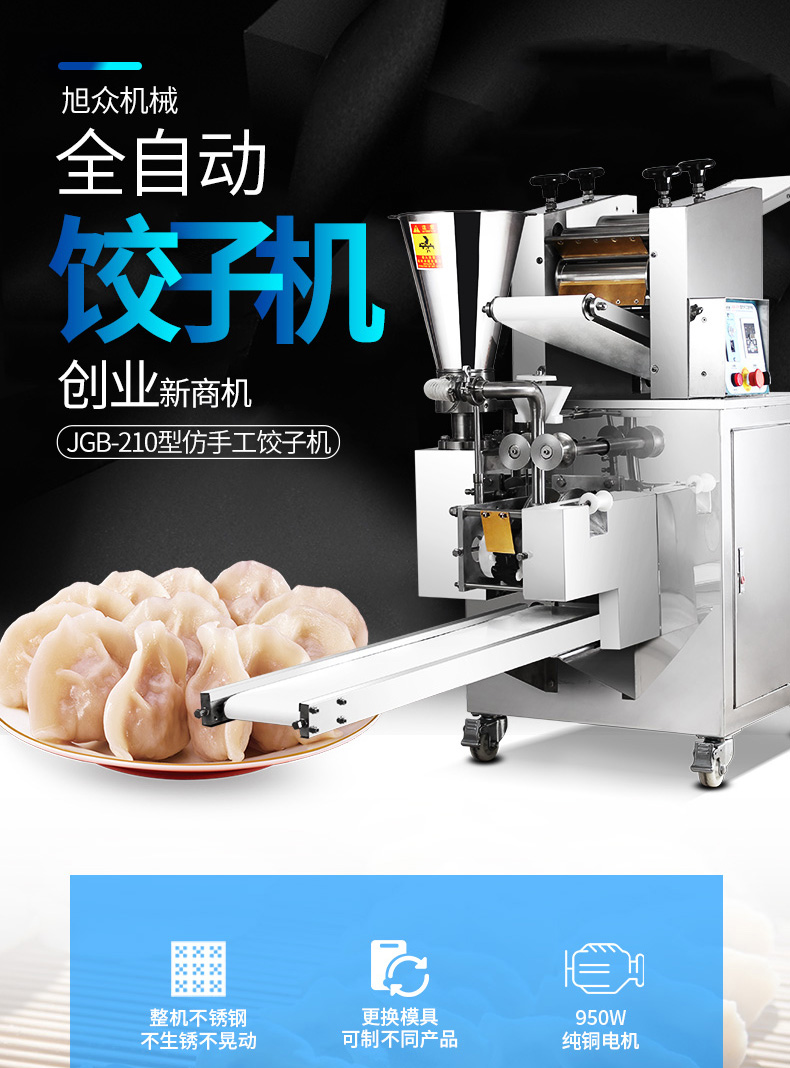 JGB-210型仿手工餃子機,本機采用自動壓面皮包餃子的新工藝技術(shù),本機可生產(chǎn)速凍餃子等,能生產(chǎn)各種肉餡、肉菜混合餡、全菜餡及其他種餡的餃子,適用于餃子館、食品生產(chǎn)廠家、賓館、飯店、餐廳、團體食堂、學校、部隊。免費上門安裝調(diào)試,贈送面點工藝