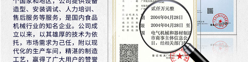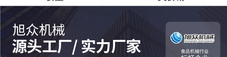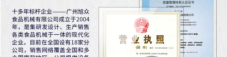 廣州旭眾食品機械有限公司是一家集科研開發(fā),生產設計,營銷服務為一體的現代化生產企業(yè)?,F代化生產車間,精湛制造技術,所產機械歷經市場重重考驗,不斷贏得海內外客戶的贊譽。