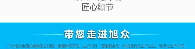 廣州旭眾食品機(jī)械有限公司是一家集科研開(kāi)發(fā),生產(chǎn)設(shè)計(jì),營(yíng)銷(xiāo)服務(wù)為一體的現(xiàn)代化生產(chǎn)企業(yè)?,F(xiàn)代化生產(chǎn)車(chē)間,精湛制造技術(shù),所產(chǎn)機(jī)械歷經(jīng)市場(chǎng)重重考驗(yàn),不斷贏得海內(nèi)外客戶(hù)的贊譽(yù)。