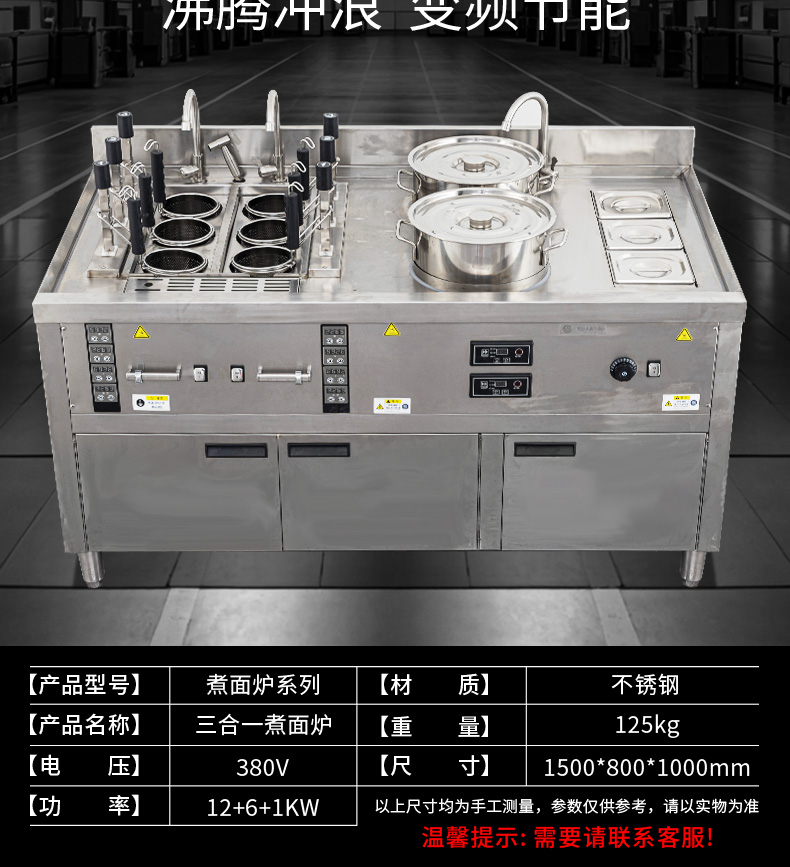 三合一煮面爐,全新升級,自動(dòng)升降再次沸騰,僅需3秒。316精鋼加粗發(fā)熱管、升級噴流技術(shù)、低功耗變頻技術(shù)。煮面爐三合一升級,沸騰沖浪、變頻節(jié)能。
