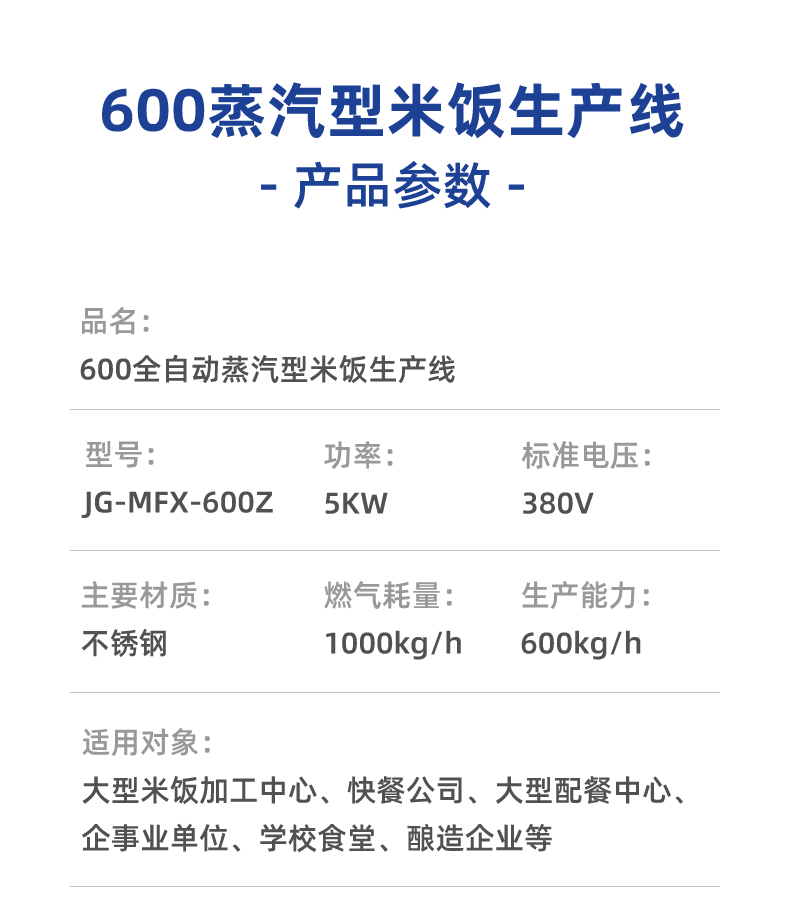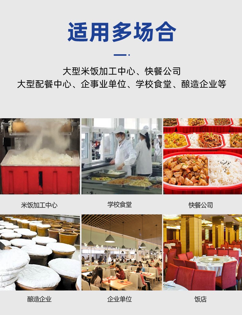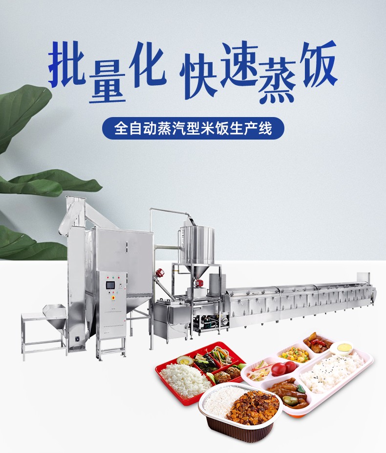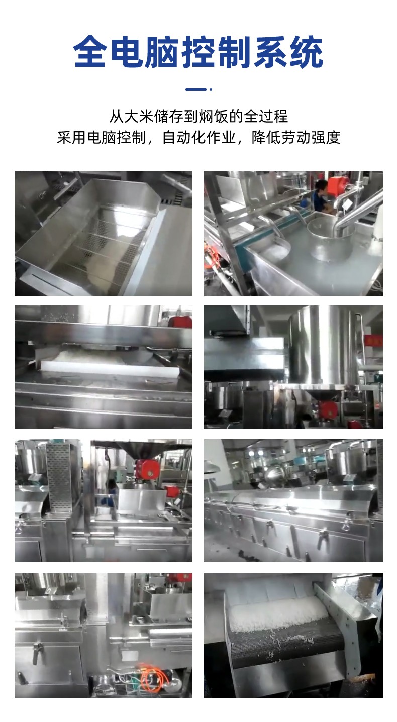 全自動蒸汽型米飯生產線,全電腦控制系統(tǒng),從大米儲存到燜飯的全過程采用電腦控制,自動化作業(yè),降低勞動強度。實現(xiàn)全自動生產,多功能,一機多用,可以用于在蒸制各種食物實現(xiàn)全自動生產,無需人工服務。