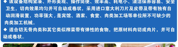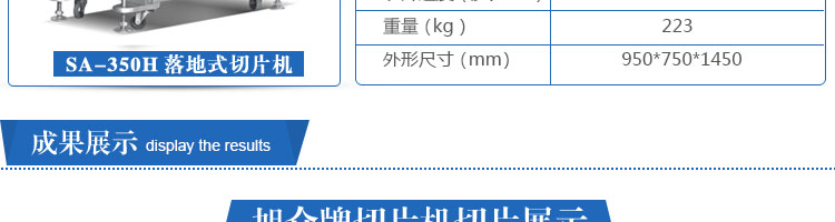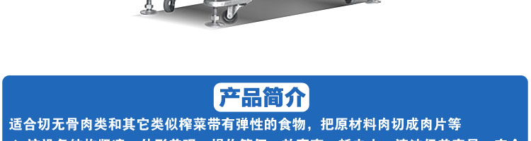 SA-350H 全自動落地式切片機(jī),適合切無骨肉類和其他類似榨菜帶有彈性的食物,把原材料肉切成肉片,并可自動成卷狀??汕信H馄⒀蛉馄?/p>