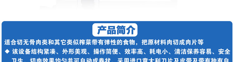 臺(tái)式全自動(dòng)切片機(jī),適合切無(wú)骨肉類(lèi)和其他類(lèi)似榨菜帶有彈性的食物,把原材料肉切成肉片,并可自動(dòng)成卷狀??汕信H馄⒀蛉馄?/p>