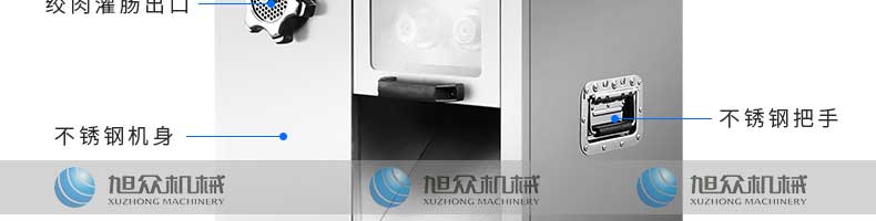 XZ-7絞切機(jī),多功能一體機(jī),切肉絞肉/灌腸/切菜。加厚不銹鋼優(yōu)質(zhì)機(jī)身堅(jiān)固耐用,不易生銹,安全衛(wèi)生易清洗。