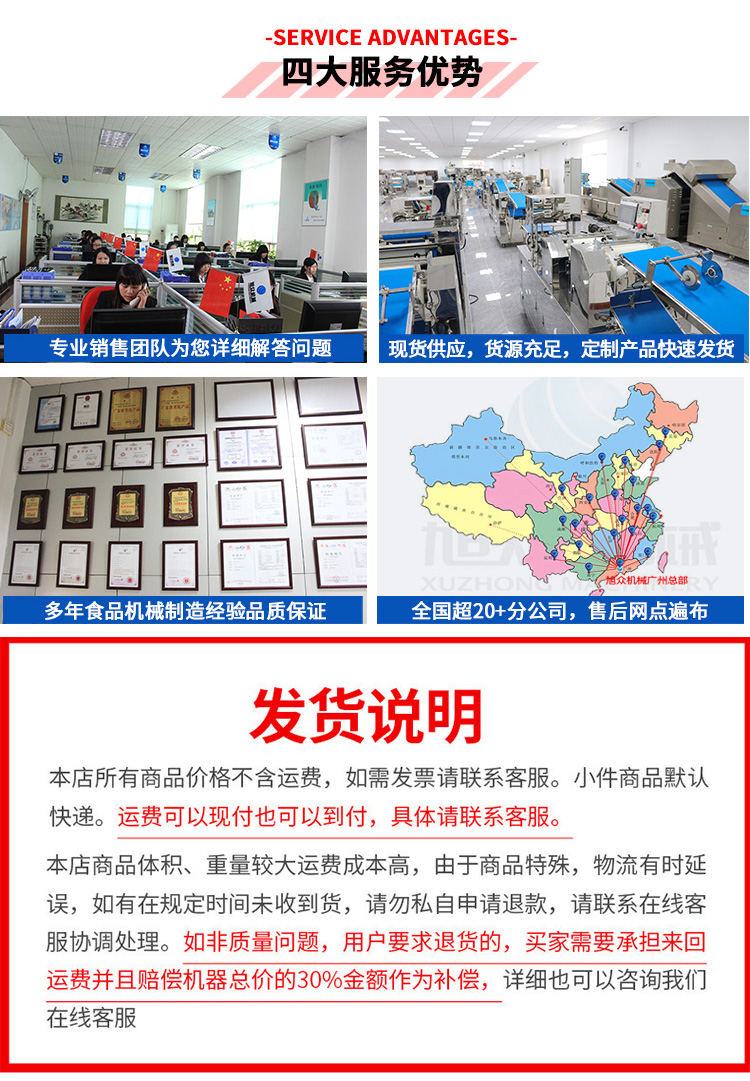 廣州旭眾食品機械有限公司是一家集科研開發(fā),生產設計,營銷服務為一體的現代化生產企業(yè)。現代化生產車間,精湛制造技術,所產機械歷經市場重重考驗,不斷贏得海內外客戶的贊譽。