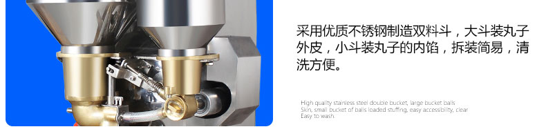 SZ-602包心肉丸機(jī),可生產(chǎn)包心魚(yú)丸、包心豬肉丸、撒尿牛肉丸、爆汁小魚(yú)丸等多種球形醬湯類(lèi)包餡產(chǎn)品。操控性強(qiáng)、穩(wěn)定性高、出品率穩(wěn)定;可抽皮增餡,做到皮薄餡多。