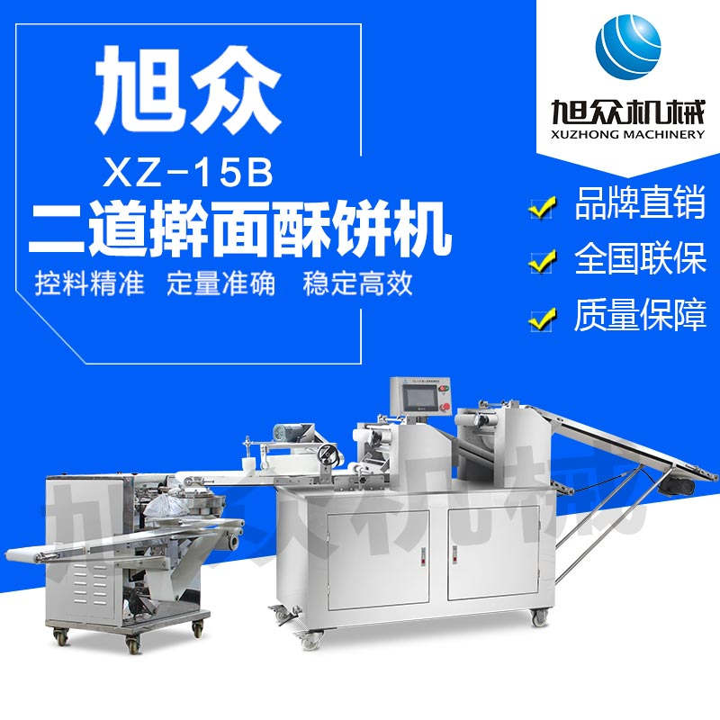 xz-15B二段酥餅機,生產(chǎn)速度快、效率高、生產(chǎn)流程流暢,各環(huán)節(jié)都輔以精密電控設(shè)備控制,不會出現(xiàn)堵面、破酥等現(xiàn)象。可生產(chǎn)蘇式月餅、肉松餅、老婆餅、廈門餡餅、金華酥餅、拉絲面包等等特色酥餅,適用于大、中型糕餅生產(chǎn)廠家,免費提供工藝技術(shù)。