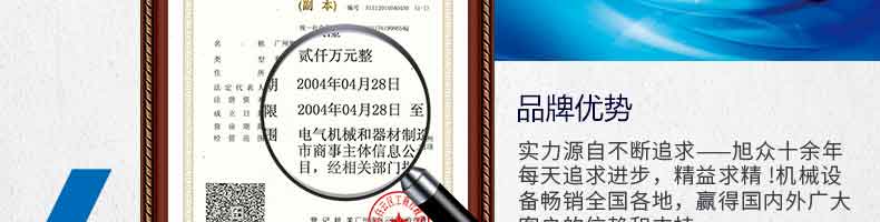 廣州旭眾食品機(jī)械有限公司是一家集科研開發(fā),生產(chǎn)設(shè)計(jì),營銷服務(wù)為一體的現(xiàn)代化生產(chǎn)企業(yè)?,F(xiàn)代化生產(chǎn)車間,精湛制造技術(shù),所產(chǎn)機(jī)械歷經(jīng)市場重重考驗(yàn),不斷贏得海內(nèi)外客戶的贊譽(yù)。