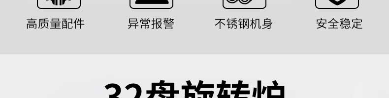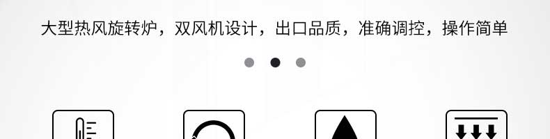 熱風(fēng)旋轉(zhuǎn)爐系列,多項核心技術(shù)滿足您的需求大型熱風(fēng)旋轉(zhuǎn)爐,雙風(fēng)機設(shè)計,出口品質(zhì),準(zhǔn)確調(diào)控,操作簡單。32盤旋轉(zhuǎn)爐大容量熱風(fēng)旋轉(zhuǎn)爐,爐門釆用緊扣工藝,密封性更強,適合商用。