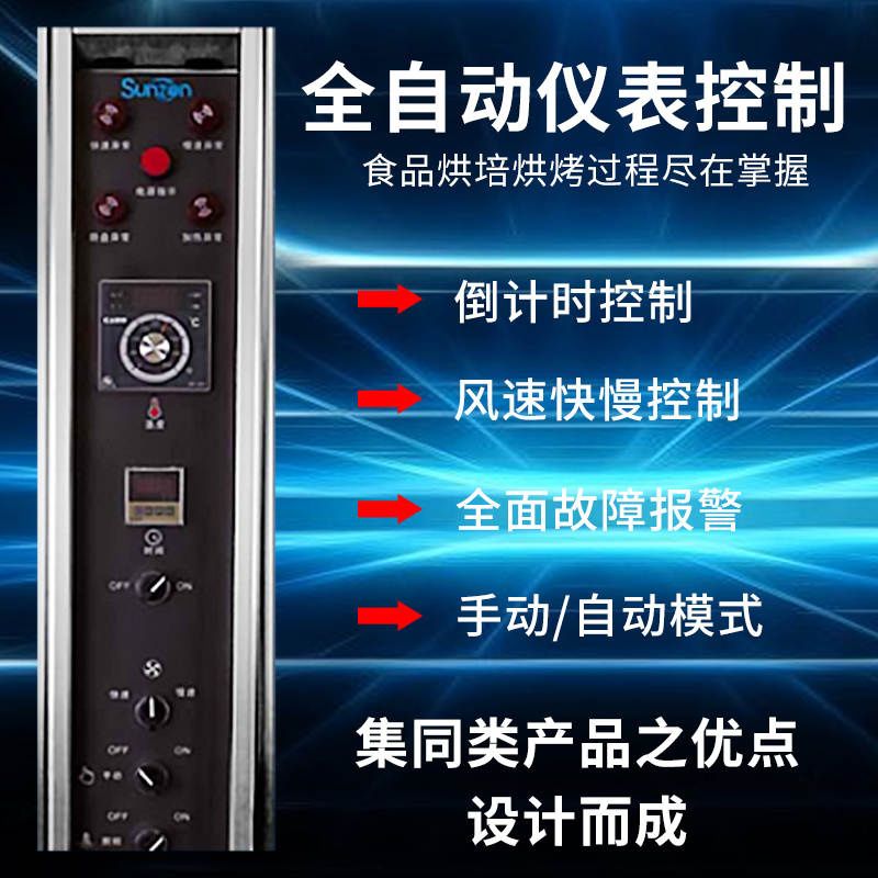 XZ-32-32層旋轉(zhuǎn)烤爐,360°熱風環(huán)流系統(tǒng)立體熱風循環(huán),加熱更高效,食品成色更誘人。全自動儀表控制,食品烘培烘烤過程盡在掌握。倒計時控制、風速快慢控制、全面障報警。