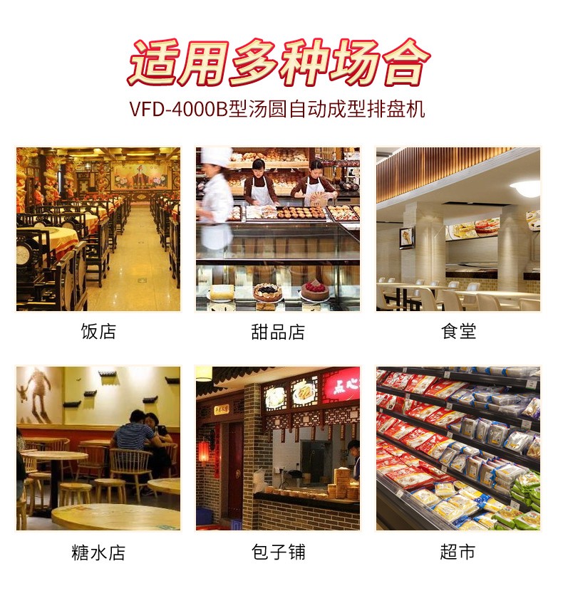 今天給大家介紹一下這款VFD-4000B型湯圓機,為什么要介紹它呢,這款機械制作多品種食品,關鍵是產量效率高,1小時的產量可達5000個,相當于20-30個工人同時手工制作湯圓,真正的低投入,高收益,省錢省工,可制作各式包餡食品,如湯圓、豆沙包、南瓜餅等,是賓館、飯店、企業(yè)、學校、部隊等公共食堂和專業(yè)戶理想的面食機械。