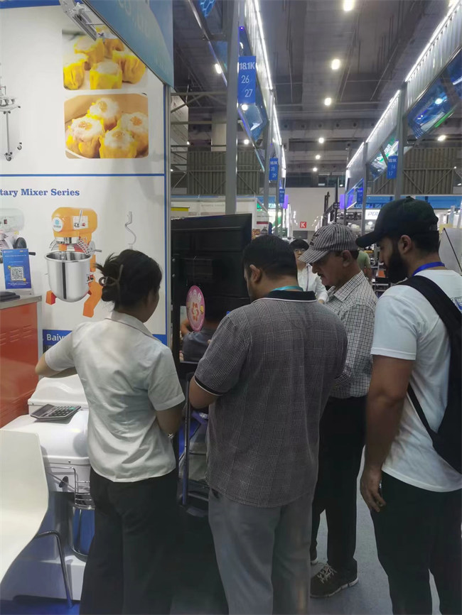 展臺上整齊地擺放著各種食品加工機械,從冰激凌機到包子機、和面機、攪拌機等,每一樣產(chǎn)品都展示著公司的技術(shù)實力和創(chuàng)新能力。