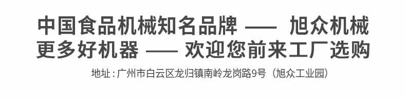 廣州旭眾食品機(jī)械有限公司是一家集科研開發(fā),生產(chǎn)設(shè)計(jì),營銷服務(wù)為一體的現(xiàn)代化生產(chǎn)企業(yè)。現(xiàn)代化生產(chǎn)車間,精湛制造技術(shù),所產(chǎn)機(jī)械歷經(jīng)市場重重考驗(yàn),不斷贏得海內(nèi)外客戶的贊譽(yù)。