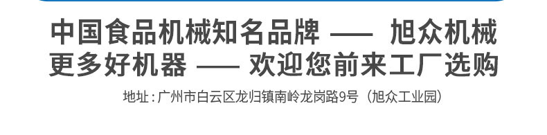 廣州旭眾食品機(jī)械有限公司是一家集科研開(kāi)發(fā),生產(chǎn)設(shè)計(jì),營(yíng)銷(xiāo)服務(wù)為一體的現(xiàn)代化生產(chǎn)企業(yè)?,F(xiàn)代化生產(chǎn)車(chē)間,精湛制造技術(shù),所產(chǎn)機(jī)械歷經(jīng)市場(chǎng)重重考驗(yàn),不斷贏得海內(nèi)外客戶(hù)的贊譽(yù)。