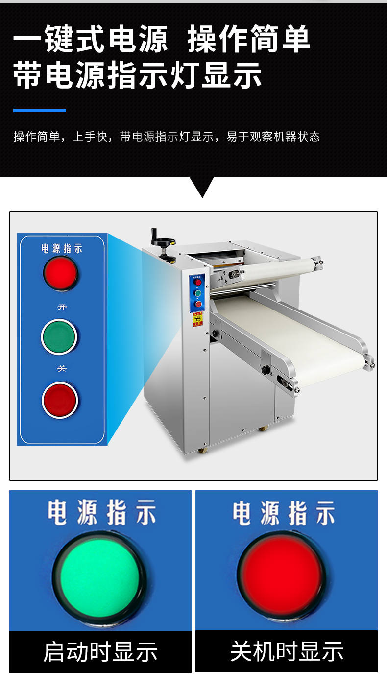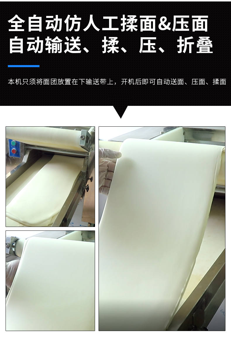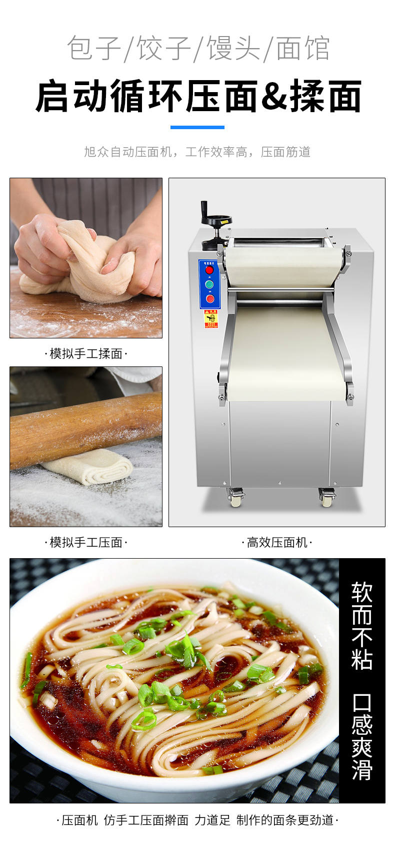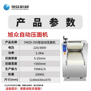 YMZD-350自動壓面機(jī),自動循環(huán)、厚薄可調(diào)。包子、餃子、饅頭,面館等場所適用。啟動循環(huán)壓面、揉面。全自動仿人工揉面,壓面自動輸送、揉、壓、折疊。