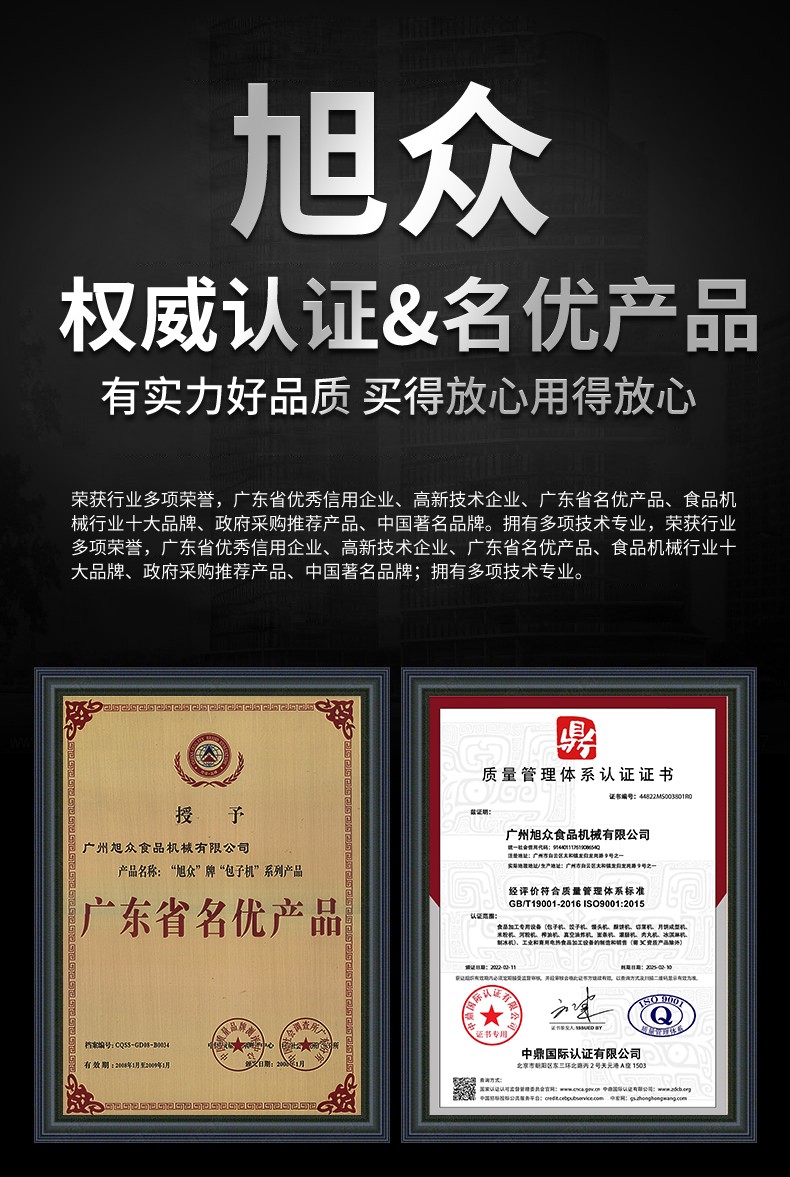 廣州旭眾食品機(jī)械有限公司是一家集科研開發(fā),生產(chǎn)設(shè)計(jì),營(yíng)銷服務(wù)為一體的現(xiàn)代化生產(chǎn)企業(yè)?,F(xiàn)代化生產(chǎn)車間,精湛制造技術(shù),所產(chǎn)機(jī)械歷經(jīng)市場(chǎng)重重考驗(yàn),不斷贏得海內(nèi)外客戶的贊譽(yù)。