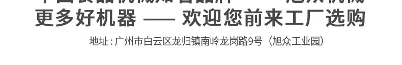 廣州旭眾食品機(jī)械有限公司是一家集科研開發(fā),生產(chǎn)設(shè)計,營銷服務(wù)為一體的現(xiàn)代化生產(chǎn)企業(yè)。現(xiàn)代化生產(chǎn)車間,精湛制造技術(shù),所產(chǎn)機(jī)械歷經(jīng)市場重重考驗,不斷贏得海內(nèi)外客戶的贊譽(yù)。