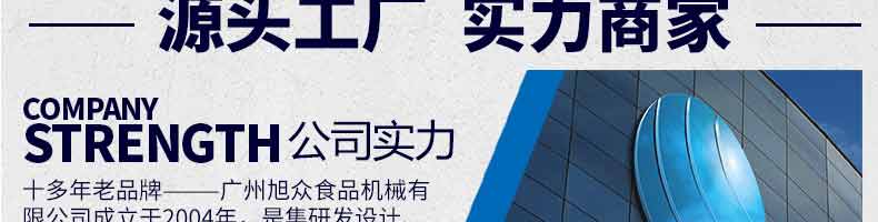 廣州旭眾食品機(jī)械有限公司是一家集科研開發(fā),生產(chǎn)設(shè)計(jì),營銷服務(wù)為一體的現(xiàn)代化生產(chǎn)企業(yè)。現(xiàn)代化生產(chǎn)車間,精湛制造技術(shù),所產(chǎn)機(jī)械歷經(jīng)市場重重考驗(yàn),不斷贏得海內(nèi)外客戶的贊譽(yù)。