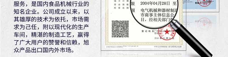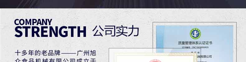 廣州旭眾食品機(jī)械有限公司是一家集科研開(kāi)發(fā),生產(chǎn)設(shè)計(jì),營(yíng)銷服務(wù)為一體的現(xiàn)代化生產(chǎn)企業(yè)。現(xiàn)代化生產(chǎn)車間,精湛制造技術(shù),所產(chǎn)機(jī)械歷經(jīng)市場(chǎng)重重考驗(yàn),不斷贏得海內(nèi)外客戶的贊譽(yù)。